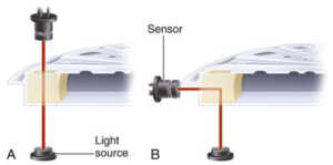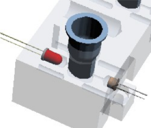 Optical method is LED assisted focusing of the light on the “test solution” wherein the desired wave length is beamed and on the other side the light passed through the “test solution” is captured through the optical receivers. Basic setup is as shown below.