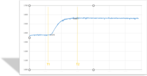 The algorithm in the microcontroller determines the slope and finds out the “bell curve” as represented above. With this, the left point of the bell curve and right point of the bell curve are determined – with 70% of the maximum slope. Average of this left (T1) and right (T2) values are calculated and that would indicate the coagulation time